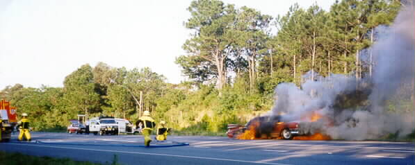 One of those cool, crisp, clear winter days. A perfect day to take the Classic for a cruise. The motor is smooth and quiet and the road is clear and straight. Your lateral vision picks up a wisp of something drifting from beneath the bonnet. Before you have time to react, the wisp becomes an ominous black cloud. You pull over to the side of the road and notice the smoke from beneath the bonnet is now pouring from every aperture. Your pride and joy is quickly engulfed in flames. Beyond salvage, you can only regret that you didn’t double check that little wiring job you had done a week before. Perhaps a fire extinguisher might have been a better investment than the new radio. Cars, particularly older cars, are susceptible to fire. The electrical systems, whilst well protected with fuses, are the most frequent cause of fire, usually because the basic precautions have not been taken. Correct fuses, checks to ensure the integrity of insulation and protection where wiring is prone to movement or abrasion, all assist in ensuring electrical systems continue to function. Is the battery held securely in place in your car? Are the cover plates likely to short across battery terminals? All these factors can lead to a car fire. What about your fuel system? Does it leak? Are all the fuel lines in good condition and all connections tight and sealed? Is the carburetor prone to backfire and/or leakage? Exhaust systems are the other major cause of vehicle fires. Is the exhaust sealed, firmly attached to the vehicle and with adequate space between the exhaust and bodywork to ensure cooling and reduce transmission of heat? Is it clear of cables and wires. There are a number of actions which can minimize the likelihood and impact of fire in a car. First and foremost every vehicle should be fitted with a fire extinguisher. The most suitable extinguisher for your vehicle is a dry chemical powder extinguisher. This extinguisher is suited to fires in flammable liquids and electrical fires, and is considered to be the best lightweight general purpose extinguisher. It should be located in a position which makes it readily accessible in the event of a vehicle fire. Most extinguishers are mounted and firmly affixed to the body inside the cockpit. The trunk provides a satisfactory alternative. One in both places is ideal. An extinguisher installed in the engine compartment will not be accessible in the event of a beneath-hood fire. It is also not recommended to lift the hood in the event of a fire in the engine compartment. The inflow of air will only accelerate the fire and make it more difficult to extinguish. If smoke is seen coming from the engine compartment of your car, the hood should be released and only raised to a level which allows accurate operation of the extinguisher on the seat of the fire. This ensures maximum effectiveness of the available extinguishing agent. In all vehicles, a battery isolation switch which is conveniently located will ensure rapid isolation of current from faulty wires or burning electrical equipment. In older vehicles this isolator switch is essential due to the likelihood of wiring deterioration. Fuses should be checked and correct fuses installed for the designed purpose. Higher calibration fuses should not be installed, so that circuits do not overload causing heat and deterioration of wiring. A car fire, particularly one fuelled by gas will be difficult to extinguish by the contents of a single extinguisher. It is essential that the fire be extinguished. In the event of a critical situation and without the appropriate extinguisher, a garden hose is an excellent backup. Quite large fires can be extinguished by utilizing the spray function on your garden hose. Water damage will always be less than the results of an uncontrolled fire. Lastly, and perhaps most importantly, many cars are lost as the result of garage fires. Normal precautions within your garage can minimize the risk of fire particularly the use of solvents, fuels and chemicals which may result in fire. Faulty electrical systems can also lead to fire as can grinding, welding and other activities carried out in rebuilding, modifying or maintaining your car. Install smoke alarms in your garage, a fire extinguisher and a fire blanket and you minimize the risk.