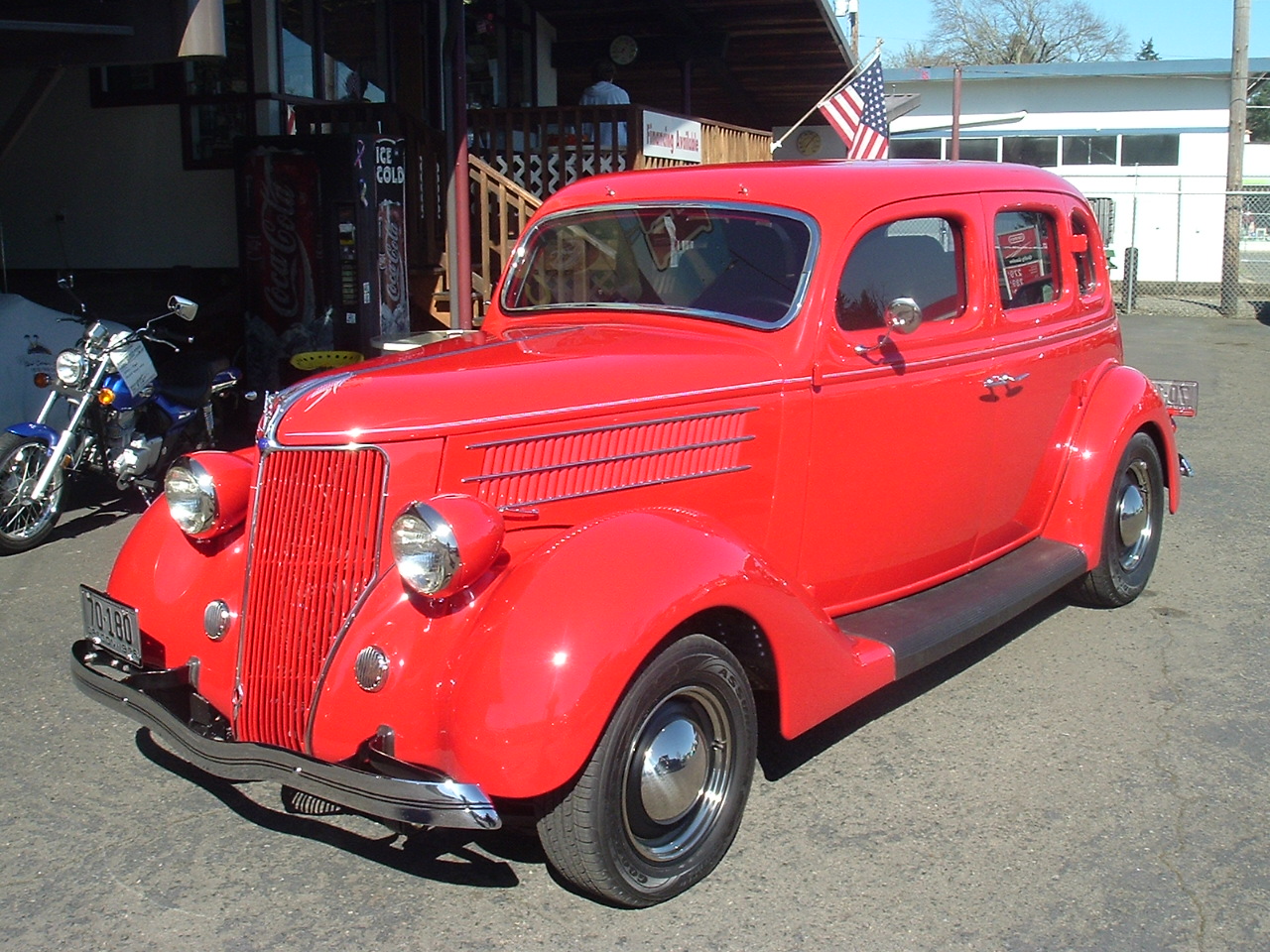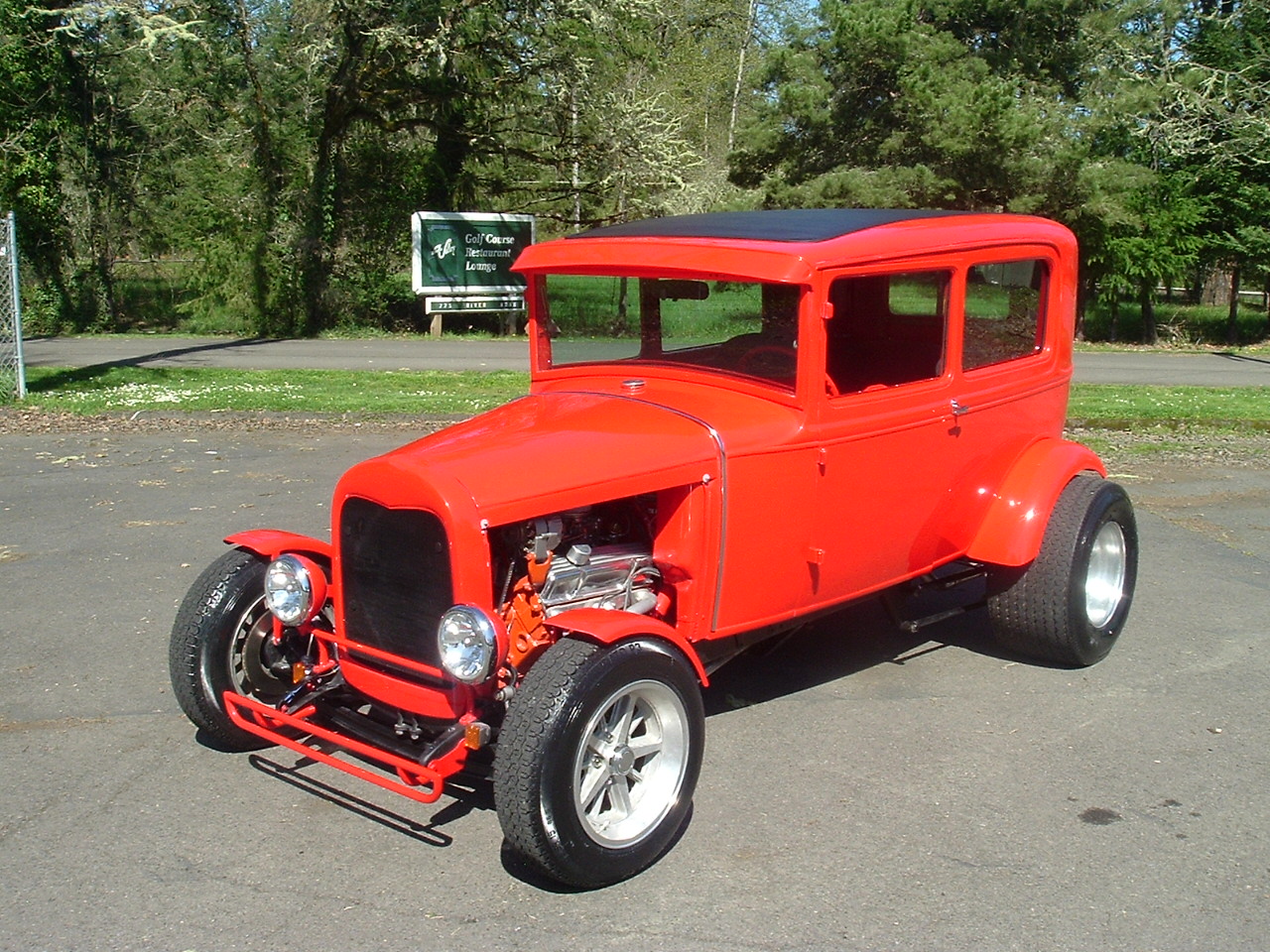 1931 Ford Model-A 2dr Sedan all Steel Street Rod. 350 V-8 rebuilt with approx 1000 miles on it, Turbo 350 automatic trans. Boxed Model-A frame, 4" drop front axle, Disc brakes, 4bar. Ford 9" rear end 4 bar with coil over's. Body is super straight and was never rusty, Custom fenders and all steel floor put in. Color is Versa Red and is Polyurethane paint. 28-29 Model-A radiator and shell. New custom top insert. New fuel tank mounted in the rear. New wiring kit and lights. Custom dash and Stewart Warner gauges. New tinted glass and handles. Seats installed in car ready for you to put interior in. # A-1906 $19,950 NOW! $16,950 SOLD!