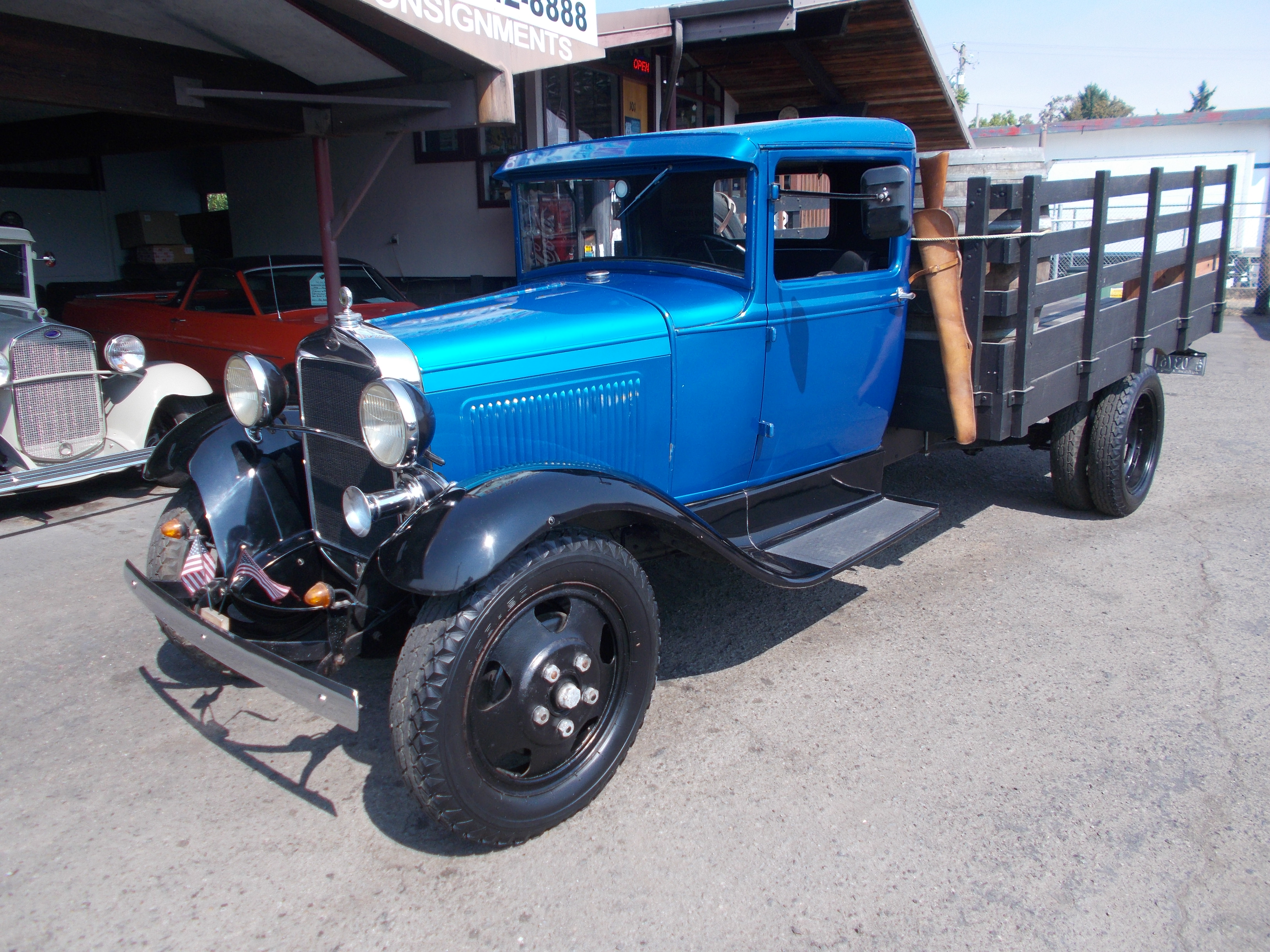 1931 Ford Model-A Flatbed 1 1/2 Ton. Restored with not a lot of miles since completed. Flathead 4cyl. with original running gear, 4spd. transmission. Runs excellent. Just been driven around to local show. Straight and sold Cab and Fenders with no rust issues. Extra's on Flatbed go with the truck. # B-1833 $15,500 NOW! $12,500