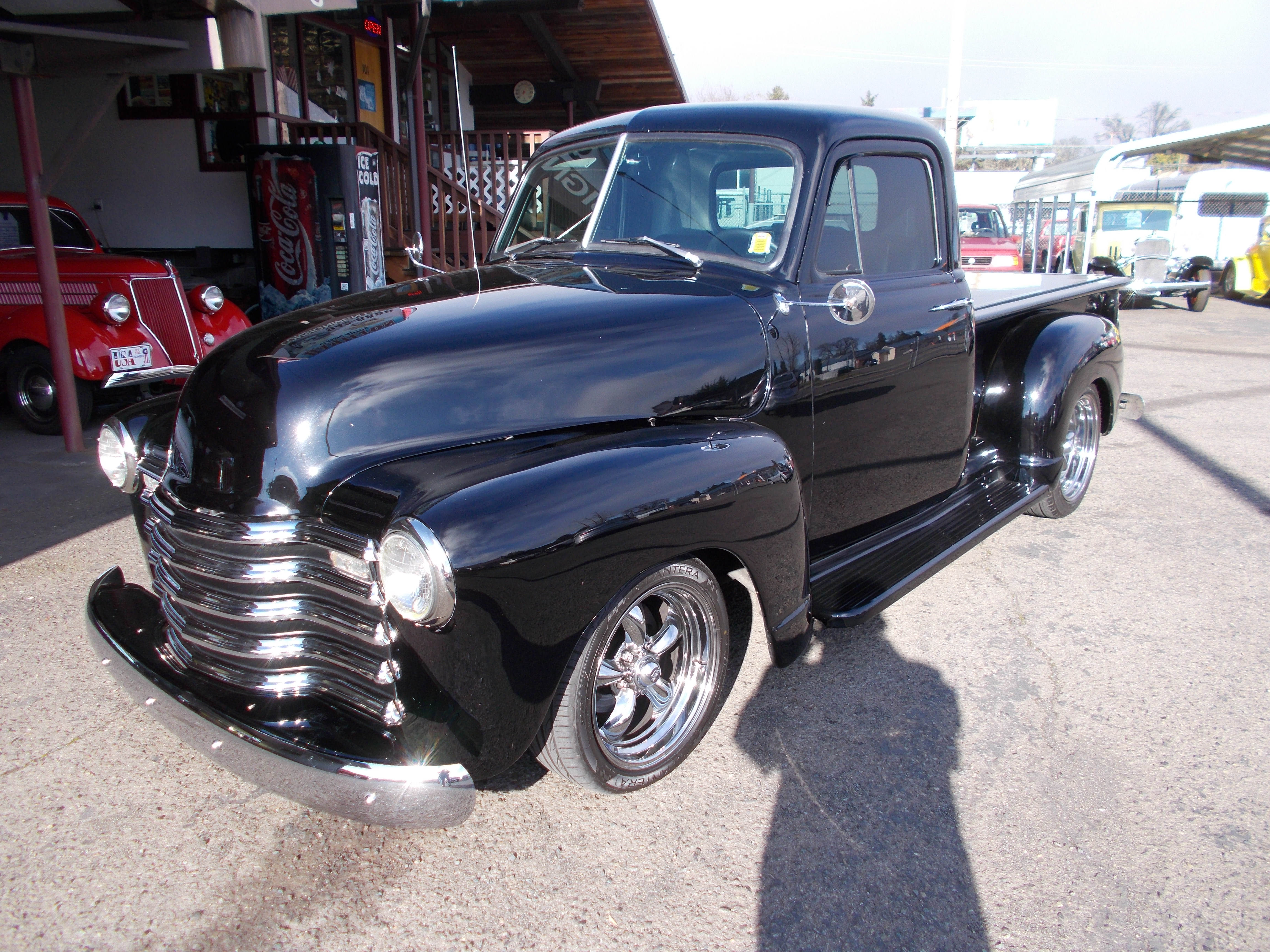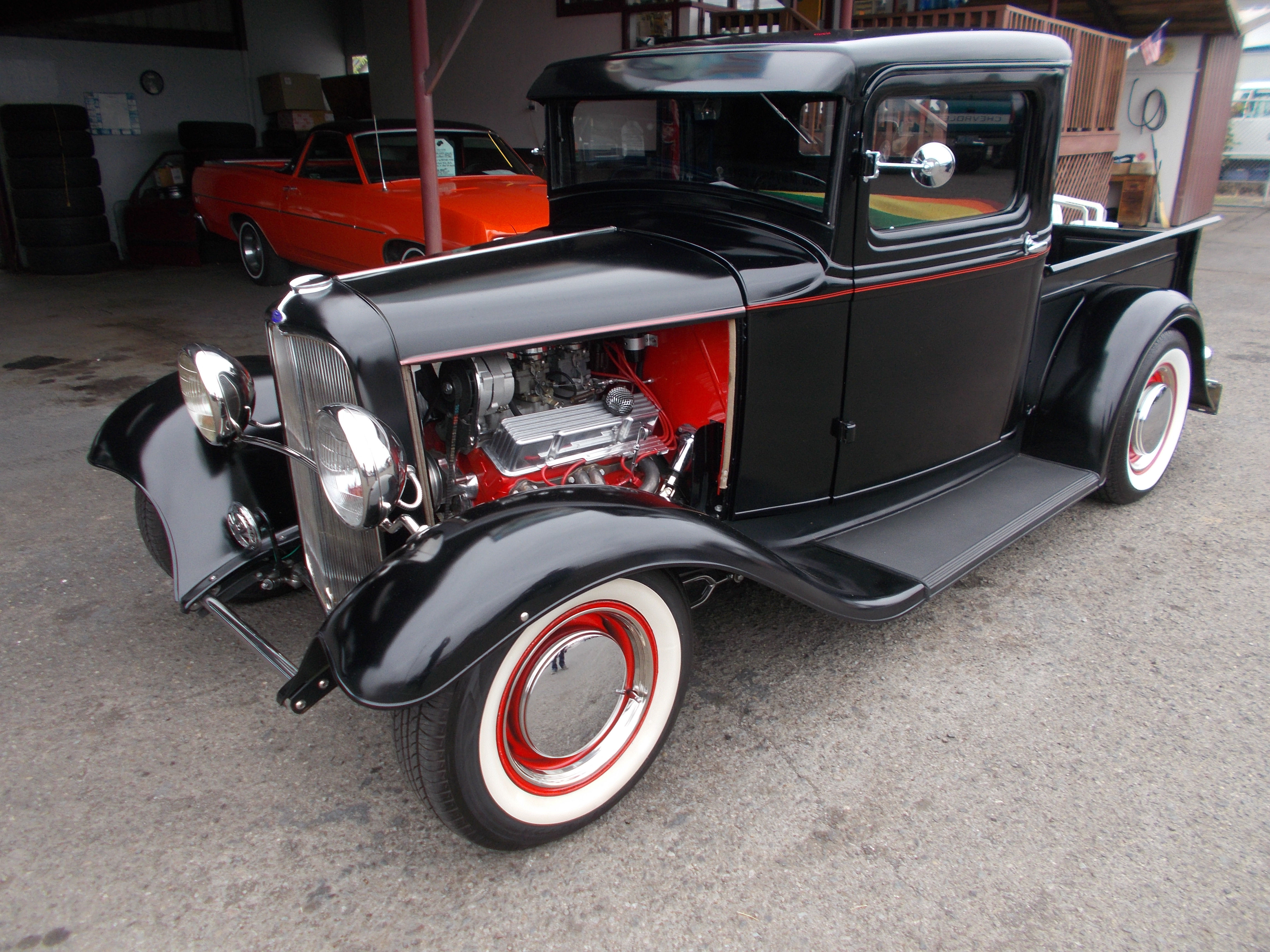 This is how the 1931 Model-A Sports Coupe below came back. 305 V-8, Turbo 400 automatic. 8' rear end with Coil over's and 4 bar. 6' drop front axle with disc brakes. Custom built Model-A frame. Paint and interior left the same. # A-1944 $21,500 SOLD!