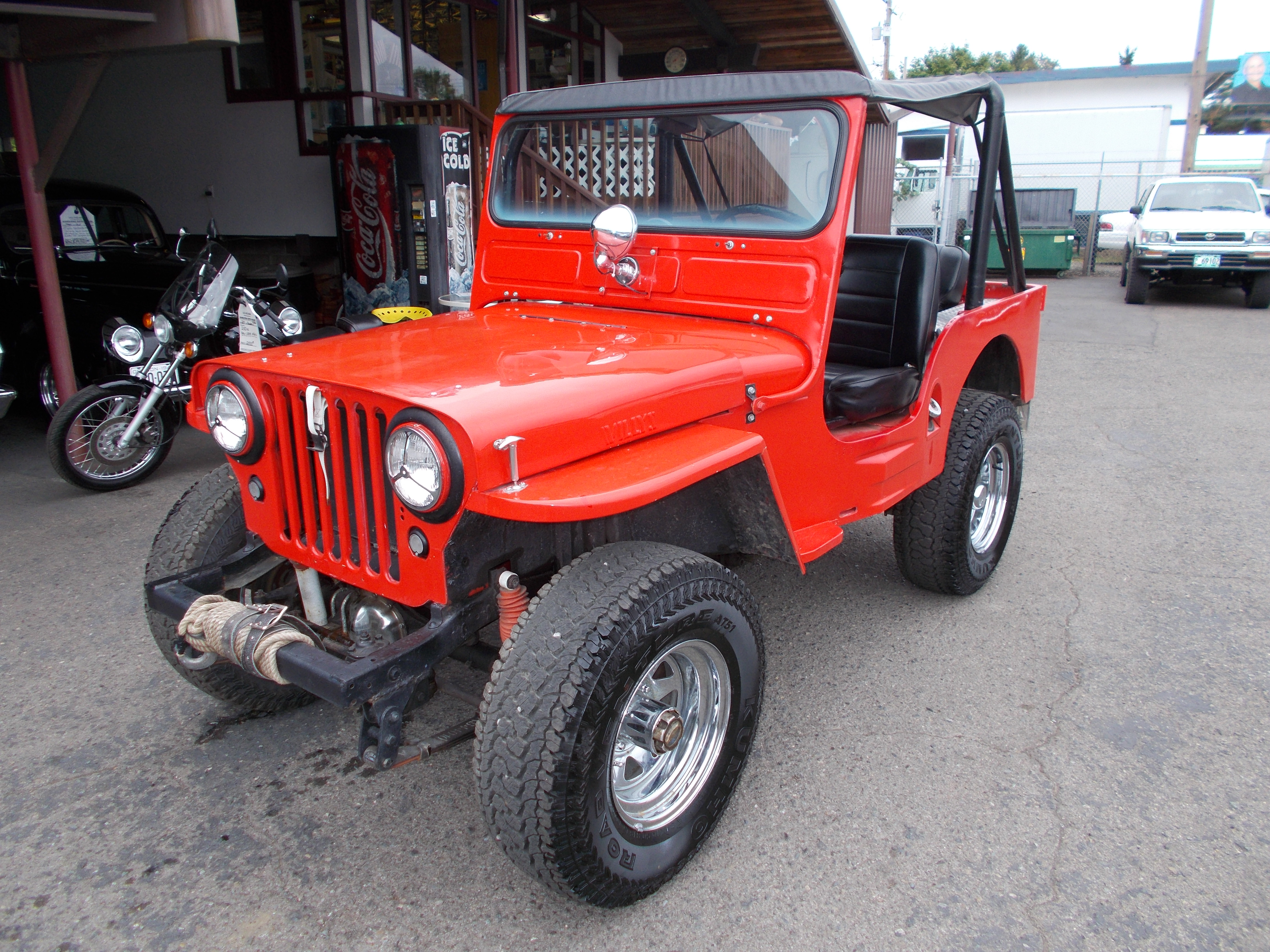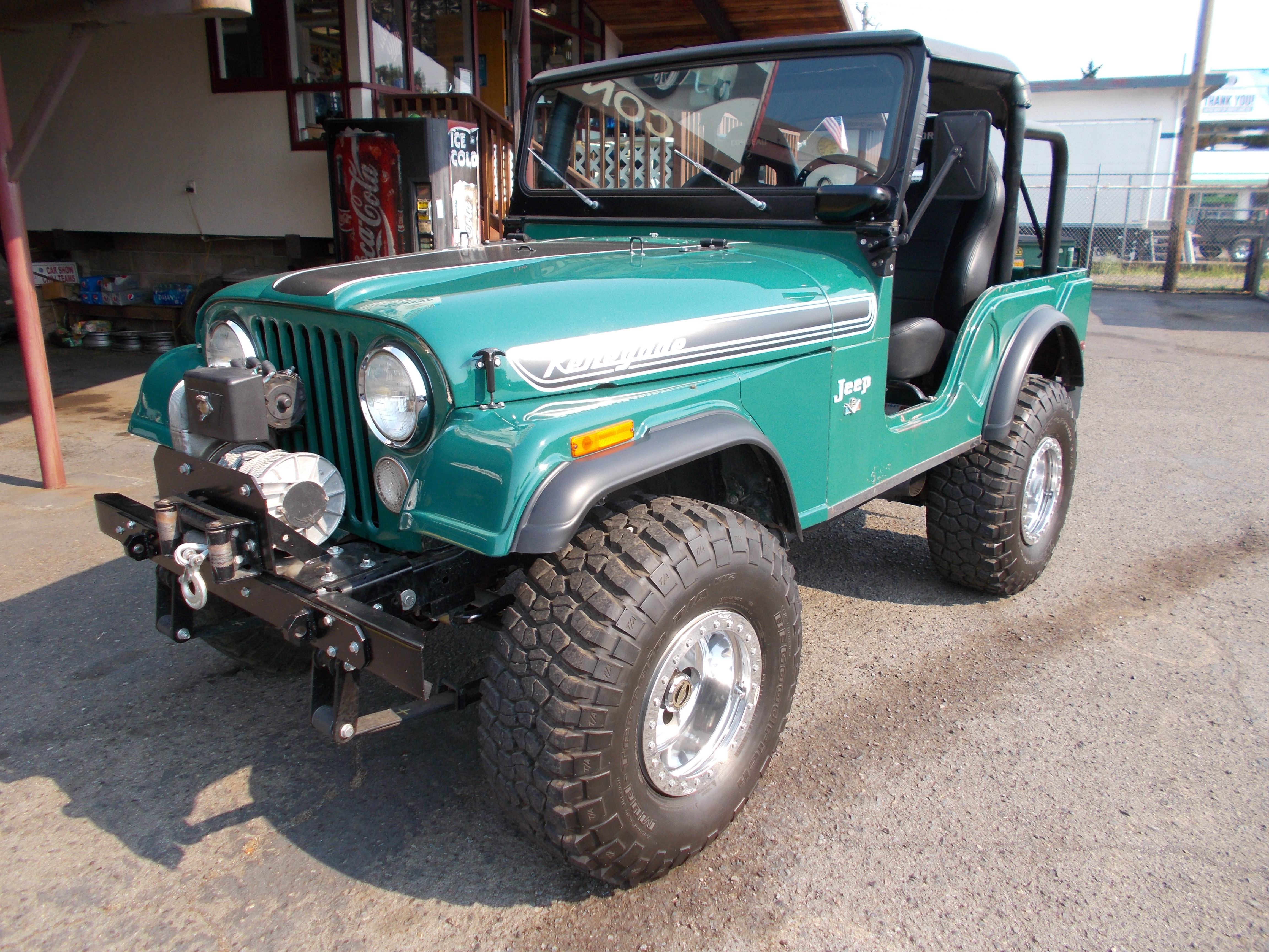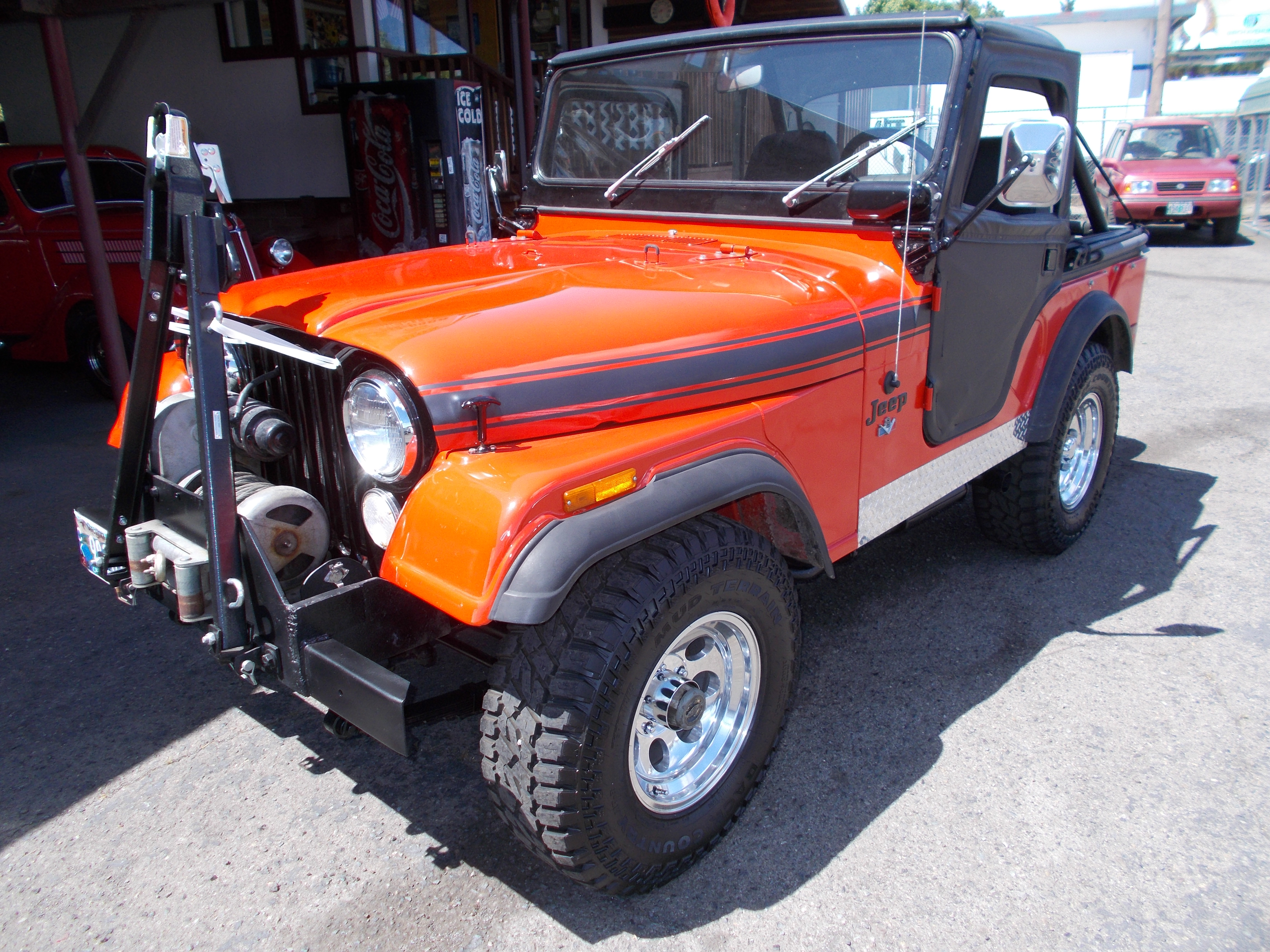 1973 Jeep CJ5. 350 V-8, M21 4spd trans. Tub is still original paint, fenders and hood repainted w/new decals, No rust problems. Original miles on jeep where 22,780 when speedometer cluster was replaced. (have orig cluster) New cluster shows 1,992 miles and those miles are correct with new motor, rear ends gone thru, drive shafts, transfer case, transmission, lift/springs, Bigger radiator, Dual batteries, after market gauges, after market seats, Warn hubs, 8000lb Warn winch, 33x12:50 15" BFG MT tires, Front sway bar w/pull pins, Full roll cage w/bikini top, also full soft top and doors. Motor has many performance parts and sounds radical but runs and drive smooth. Much more not listed in add. Have a folder of papers on jeep as seen in pictures. Very well built Jeep ! # B-1845 $21,500 NOW! $17,900 SOLD!