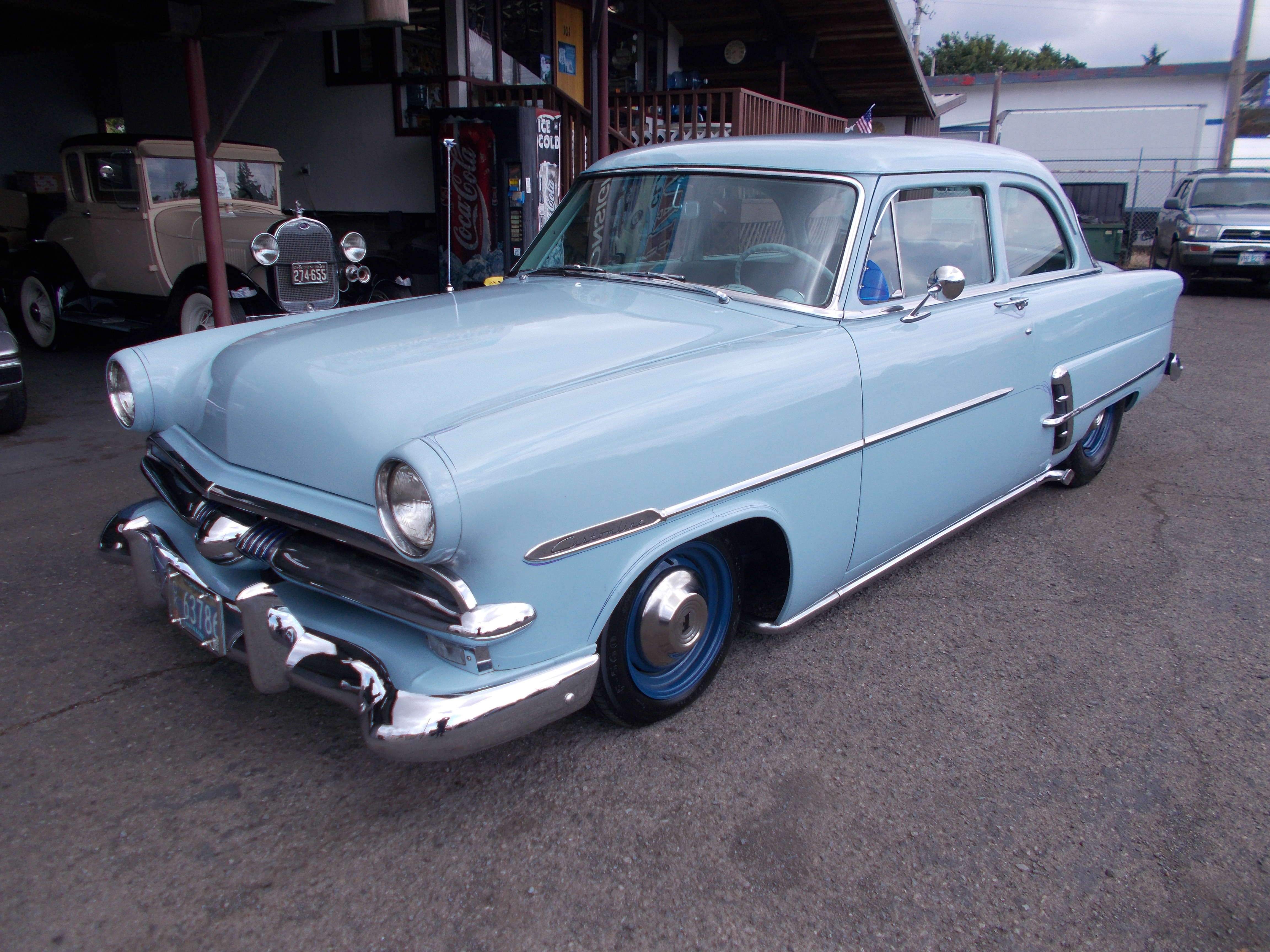 1953 Ford 2dr Custom Line. 350 V-8. Turbo 350 auto trans. Modern tubular front A-arms with disc brakes. ford 8" rear end on leaf springs w/lowering blocks. Nice cloth interior with original look. A/C & Heat works great. Auto meter gauges, CD stereo. Original solid Texas car. Nice body and paint. Car was restored about 15 years ago and has 11,008 miles. Previous owner just drove the car about 1,500 miles before we got it and said it is very reliable with no problems. He also just put new tires on it. This is a great show & Shine car and cruiser. Ready for summer! $24,500 NOW! $22,900 SOLD!