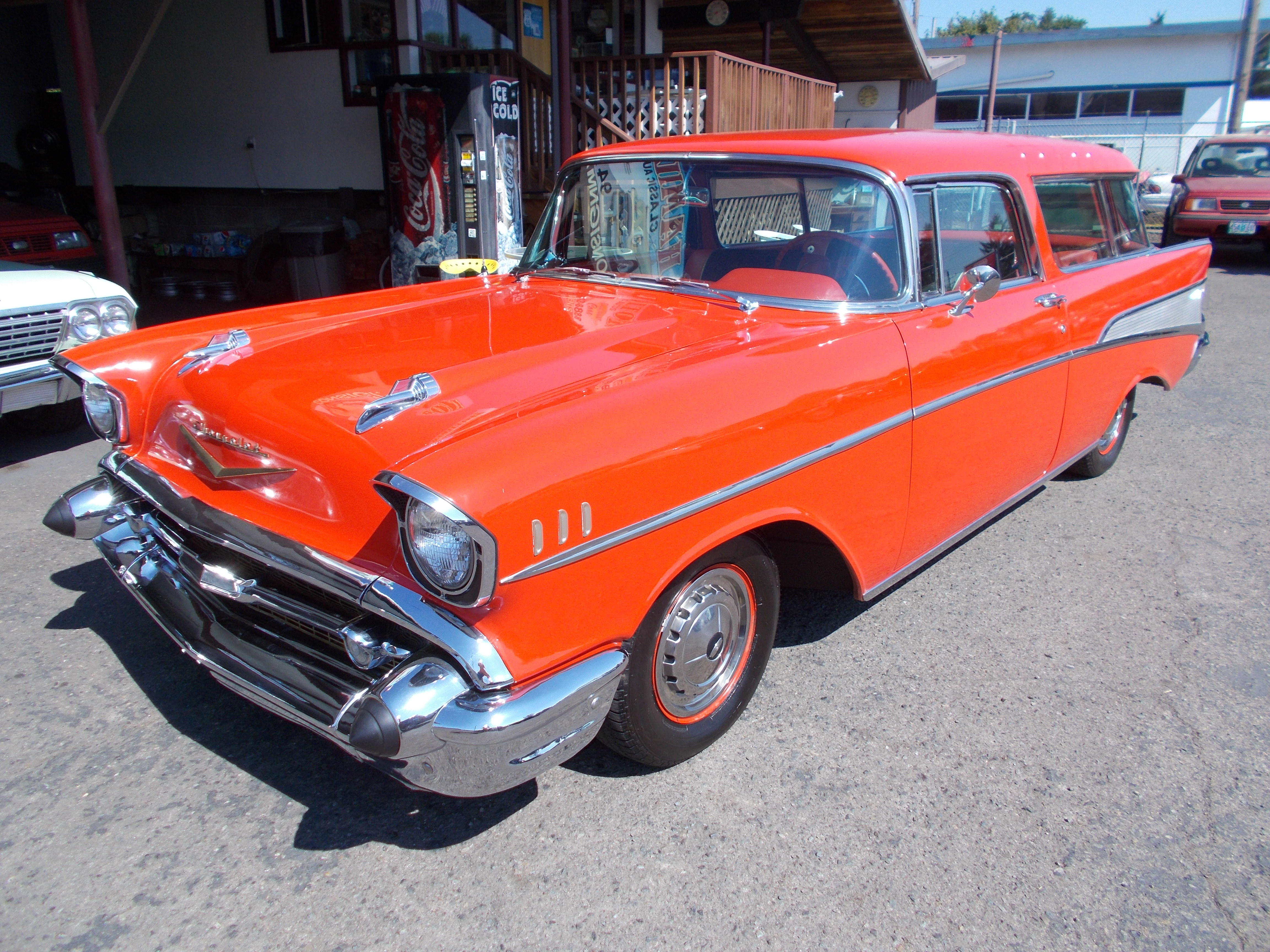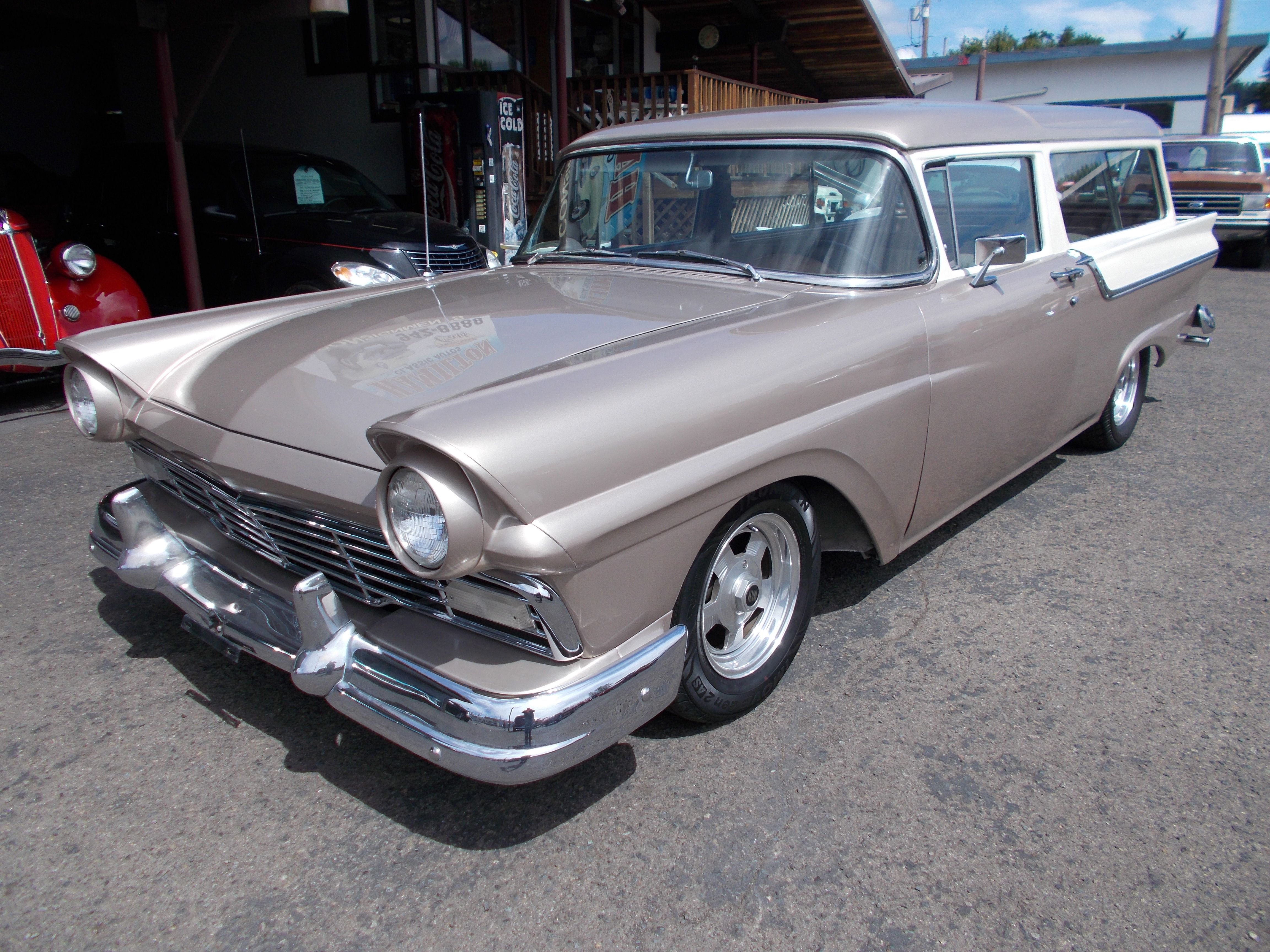 1957 Ford Ranch Wagon Street Rod. Nice older restoration. 302 V-8, C-4 auto transmission. PS, PB. A/C. Car has been done a while and still looks and runs very good. Body and paint in great condition. Cloth Interior in Nice condition, Has A/C and CD player. All glass, chrome and stainless nice. Car is ready to cruise and hard to find body style. # A-2058 $25,500 NOW! $23,900 SOLD!