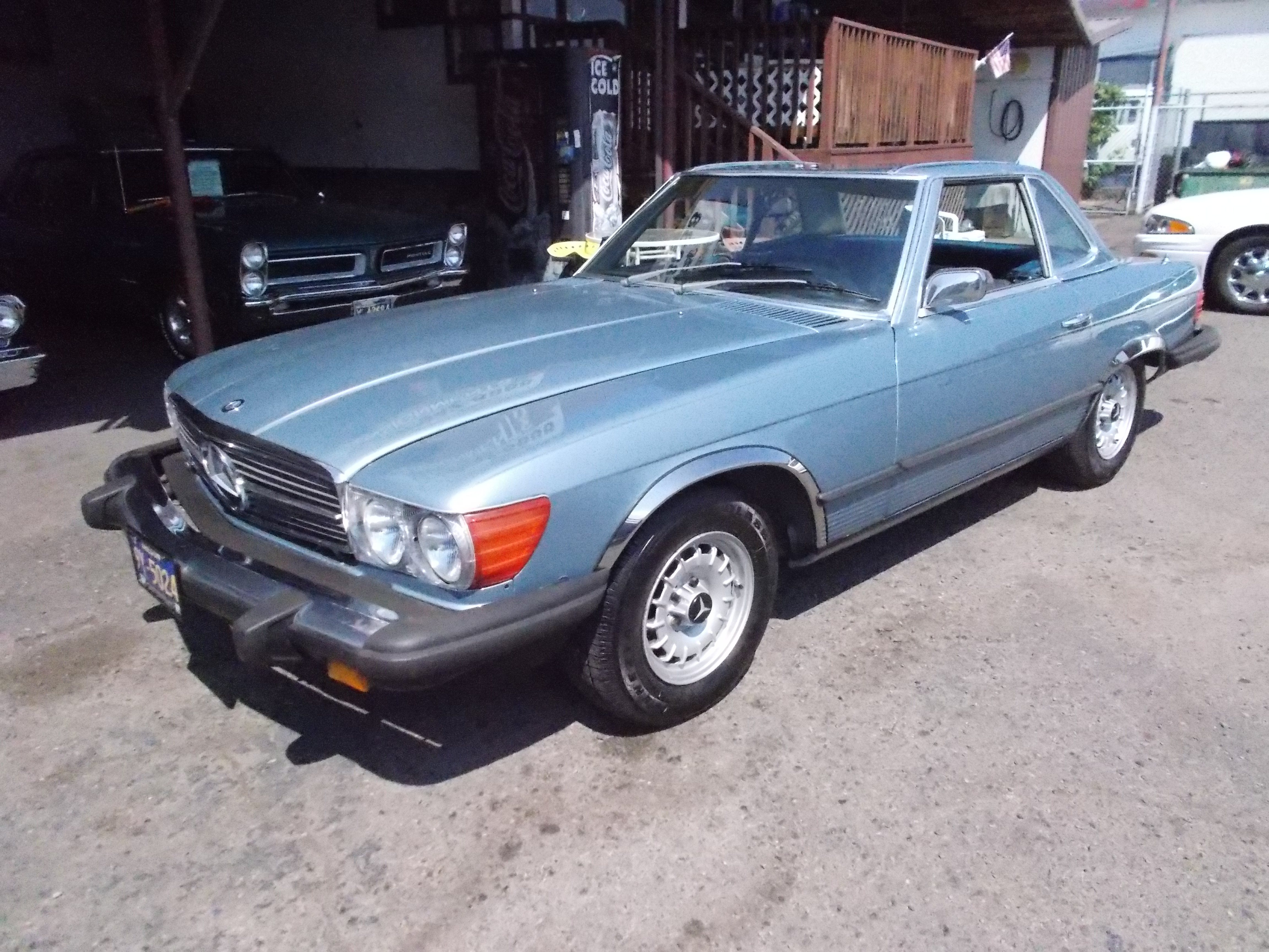 1976 Mercedes 450SL convertible both tops. This is a real clean car that has been painted back original color. Has black cloth top in great condition. Interior nice, the seat do have some splits in original covers. Also comes with car cover and rack to hold hard top. Listed with the rest of pictures is all thing done to car in the last 1,200 miles. A/C and CC not working. # A-2230 $13,500