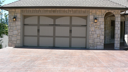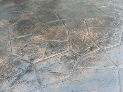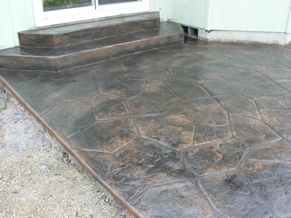 high-end look of stone or brick pavement by imprinting patterns in freshly poured concrete. We offer a multitude of colors. See the Decorative Concrete Samples pages for ideas and colors. Uses for stamped concrete include patios, driveways, entries, porches, stairs, ornamental walls, and pool decks. Call us for a personal consultation to review our portfolio, pictures and color charts to for ideas on how to add the beauty and quality of stamped concrete to your home or business. |